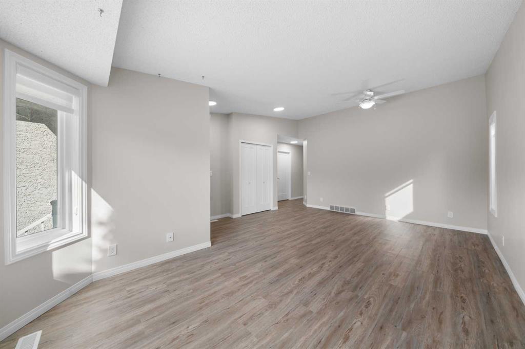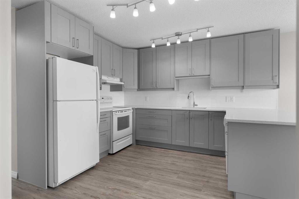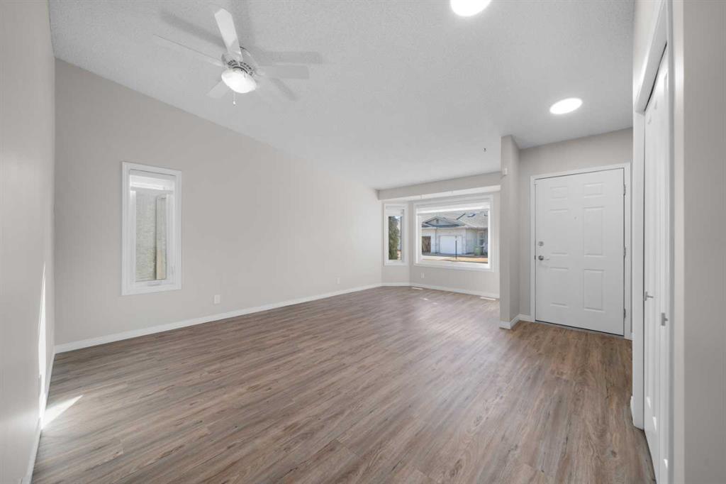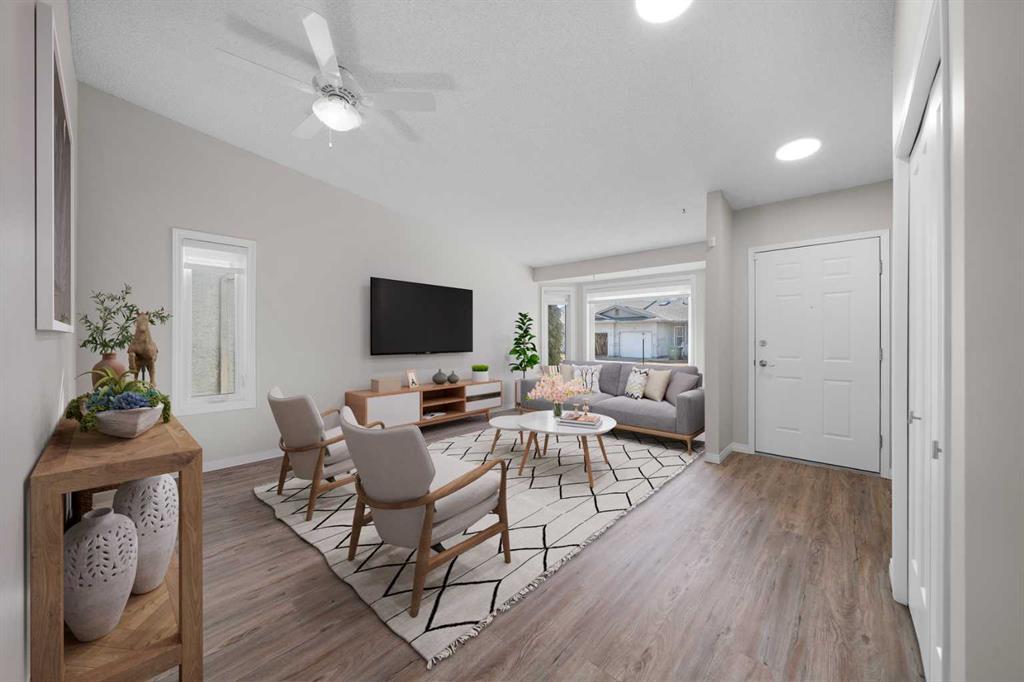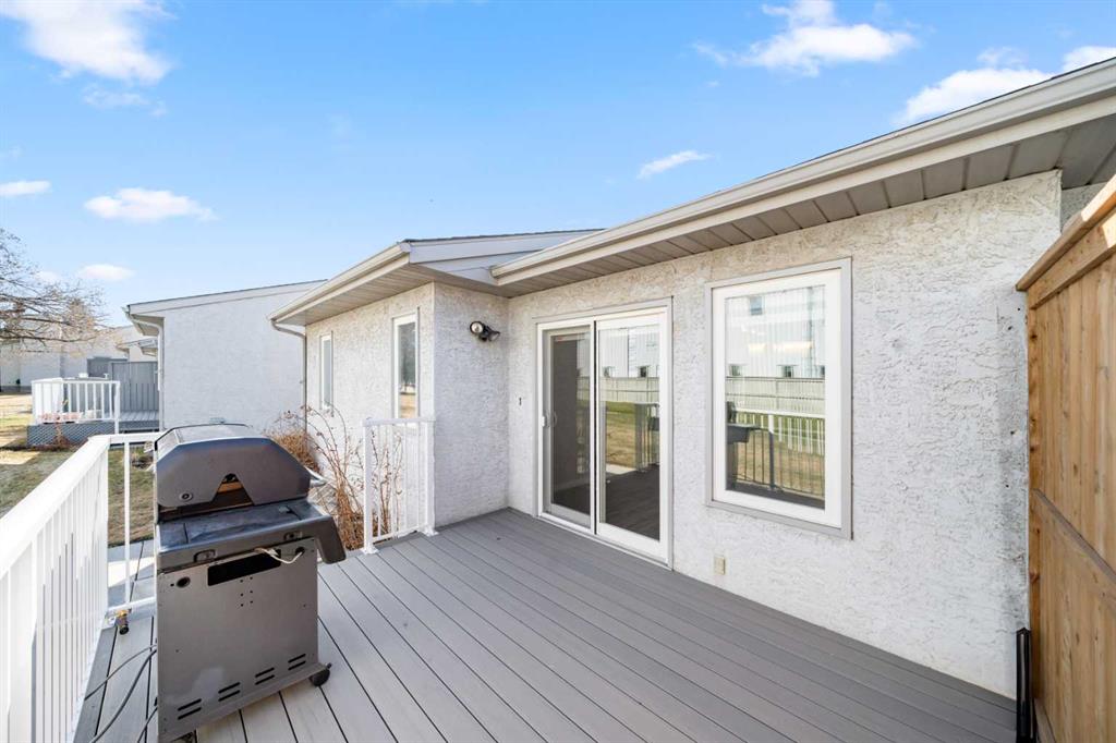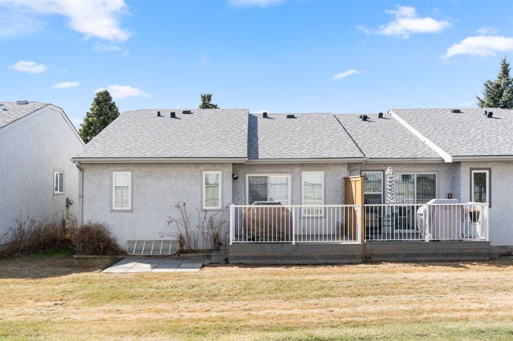 BEAUTIFULLY UPDATED BUNGALOW in a quiet PET-FRIENDLY (upon board approval) 55+ ADULT COMPLEX (adults over 18+ can be permitted upon board approval). Park your vehicle safely out of the elements in the INSULATED SINGLE ATTACHED GARAGE with tall ceilings with extra parking on the DRIVEWAY. Inside this beautiful, move-in ready home are numerous outstanding UPGRADES INCLUDING A FULLY RENOVATED MAIN FLOOR WITH PAINT, TRIM, BASEBOARDS, INTERIOR DOORS, A NEW KITCHEN, UPDATED BATHROOM, LIGHT FIXTURES, FLOORING, BLINDS AND CABINETS. THE ROOF SHINGLES WERE REPLACED IN 2021, A NEW DECK WAS ADDED IN 2023 AND THE WINDOWS INCLUDING THE PATIO DOOR WERE REPLACED IN 2020. The ducts and furnace were recently cleaned as well further adding to your peace of mind. The front living room invites relaxation while BAYED WINDOWS stream in sunny SOUTH SUNSHINE and grand CATHEDRAL CEILINGS create an airy ambience. Clear sightlines into the dining room are perfect for entertaining. The beautifully updated grey and white kitchen inspires culinary adventures featuring QUARTZ COUNTERTOPS, FULL-HEIGHT CABINETS and casual BREAKFAST BAR seating on the peninsula island. Additional space to gather is found in the adjacent breakfast nook that leads to the rear deck with a BBQ GAS LINE and included BBQ making it easy to incorporate yummy grilled dishes to your menu. The primary bedroom is a spacious retreat with DUAL CLOSETS with built-in organizers and cheater access to the MODERNLY UPDATED 4-PIECE BATHROOM. A second bedroom and convenient main floor laundry complete this level. The basement awaits your design ideas with ample storage. A rear COMPOSITE DECK and ground level patio encourage lazy weekends unwinding. This move-in ready home is EXCEPTIONALLY LOCATED WITHIN WALKING DISTANCE TO SCHOOLS, NUMEROUS PARKS, THE C-TRAIN STATION, SUNRIDGE MALL and the endless other amenities along 36th Street and throughout this well-connected community. Just a 20 minute walk to the community centre with great events and even a neighbourhood pub. The always popular Village Square Leisure Centre is a 5 minute drive away giving easy access to multiple recreational opportunities. You simply won’t find a better location for this move-in ready and beautifully updated home!