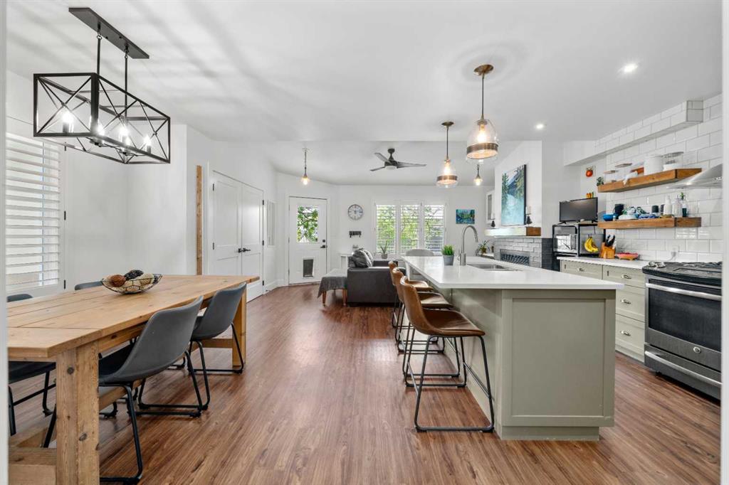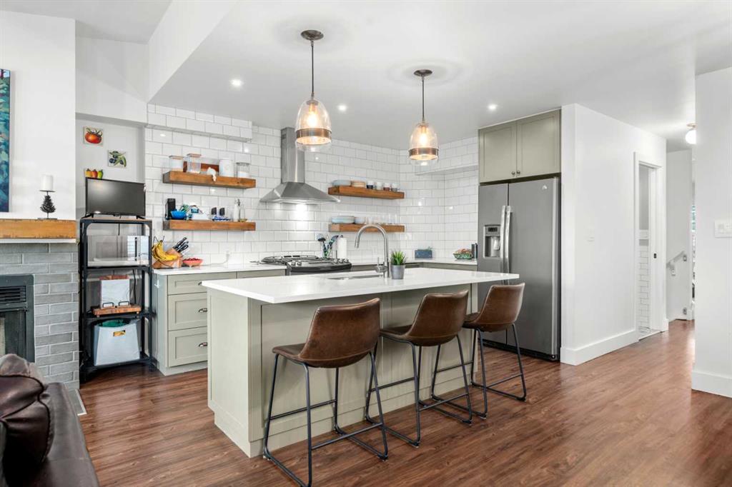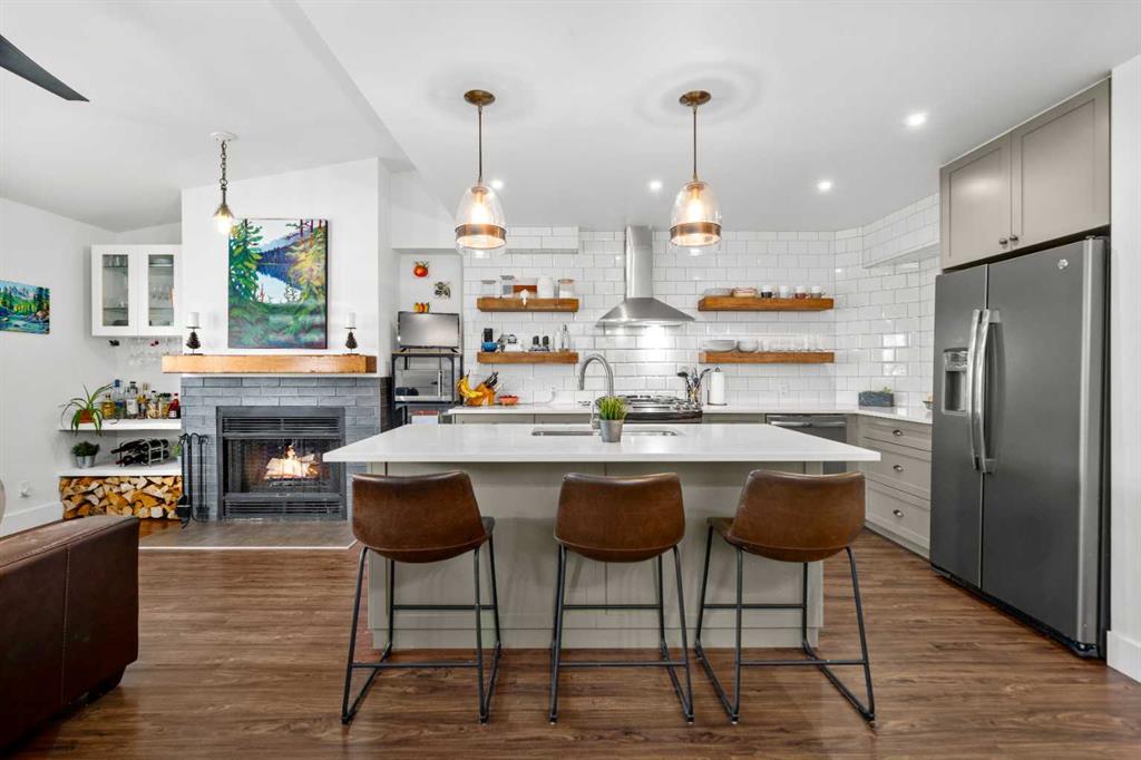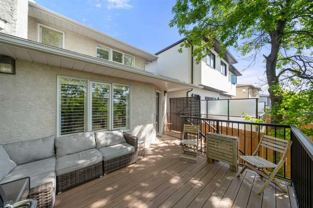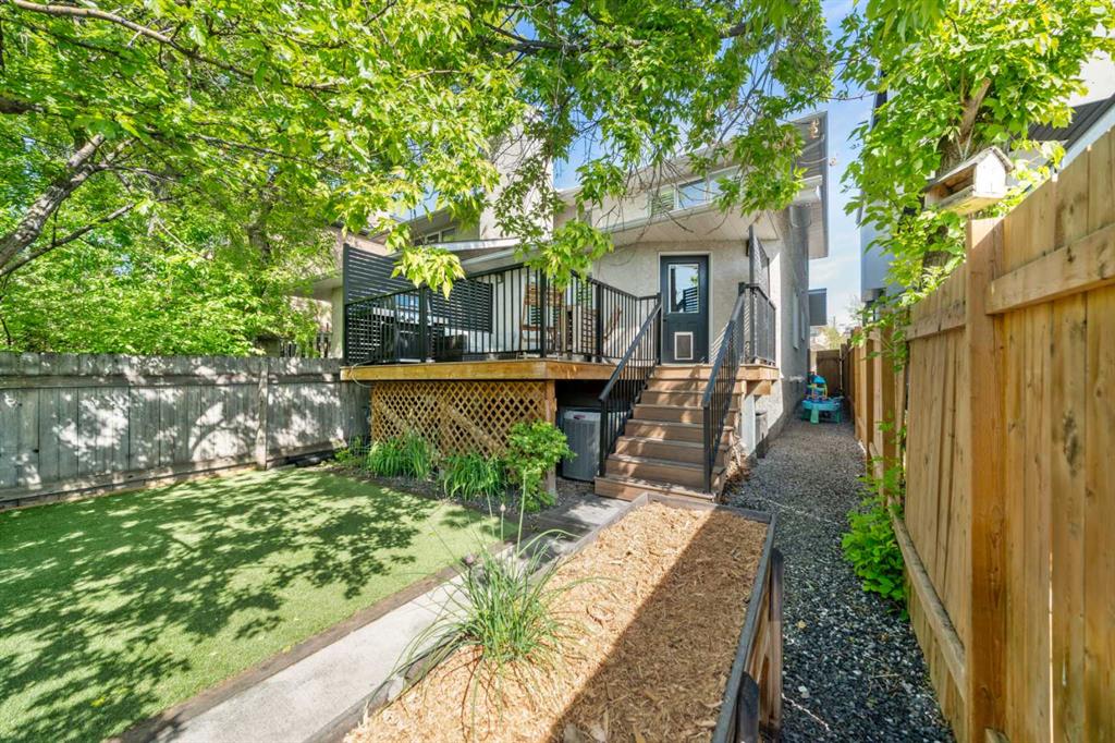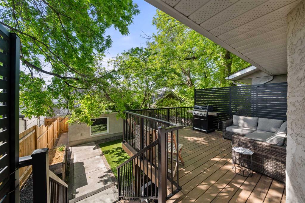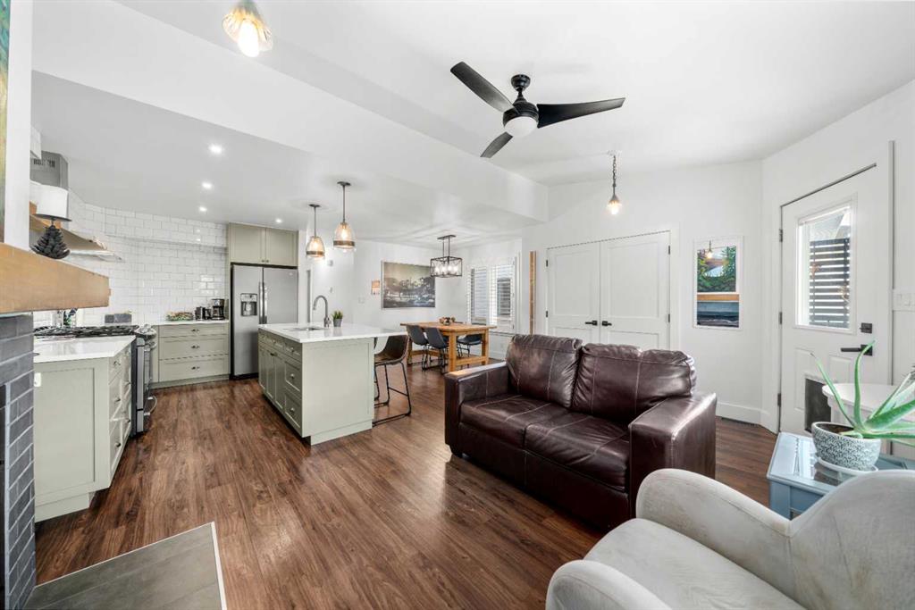 Located in the sought-after inner-city neighborhood of RICHMOND, this well-maintained home offers exceptional value with thoughtful updates, a SOUTH-FACING BACKYARD, and a fully finished basement. Inside, the front living room features a modern PANELLED FEATURE WALL and large windows with PLANTATION SHUTTERS, filling the space with natural light. An ENCLOSED FLEX ROOM houses the LAUNDRY and built-in CABINETRY, ideal as a home office, hobby space, or extra storage. The kitchen is beautifully updated with STAINLESS STEEL APPLIANCES, a GAS STOVE, FLOATING WOOD SHELVES, subway tile backsplash, and a CENTRAL ISLAND overlooking the dining area. A second rear living room at the back of the home features a VAULTED CEILING and a cozy WOOD-BURNING FIREPLACE—perfect for relaxed evenings with a view of the SOUTH BACKYARD. A 2PC POWDER ROOM completes the main level. Upstairs, a SKYLIGHT brightens the hallway leading to two spacious secondary bedrooms and a 4pc main bath. The primary bedroom is a true retreat with room to spare, a WALK-IN CLOSET, and an updated 3PC ENSUITE with a large STAND-UP SHOWER and QUARTZ COUNTERTOP VANITY. Downstairs, the FULLY FINISHED BASEMENT offers flexible living with a LARGE REC ROOM, 4TH BEDROOM with a WALK-IN CLOSET, a 4PC BATH, and plenty of storage. The SOUTH BACKYARD feels like a private escape with MATURE TREES, a COMPOSITE DECK, and PET-FRIENDLY SYNTHETIC GRASS. Additional highlights include CENTRAL AIR CONDITIONING, FLAT PAINTED CEILINGS, an oversized DOUBLE DETACHED GARAGE with GAS HEATER and ATTIC STORAGE, newer HIGH-EFFICIENCY FURNACE, and HOT WATER TANK (2023). Situated on a quiet street with a PAVED BACK LANE and just minutes to Marda Loop, schools, parks, and quick access to downtown, this is inner-city living with room to grow and relax.