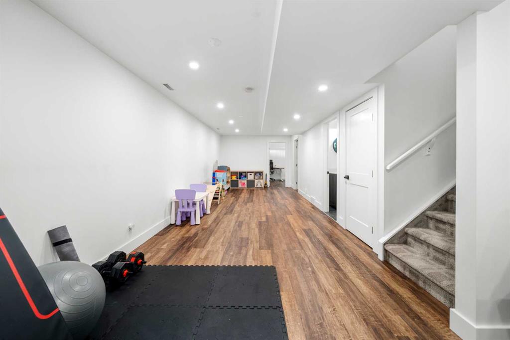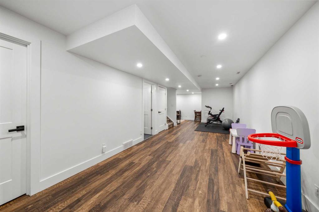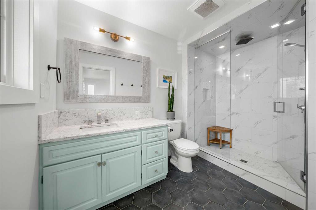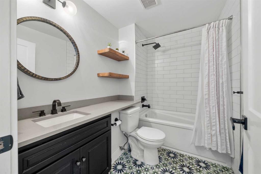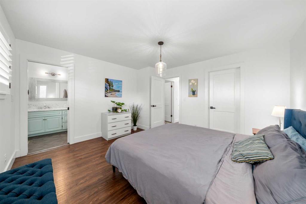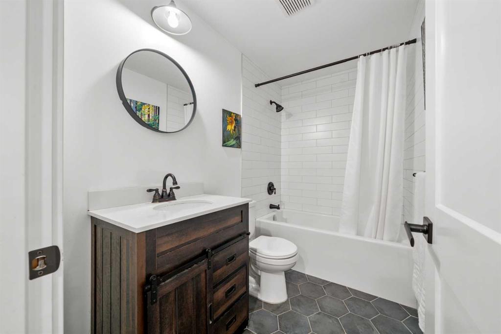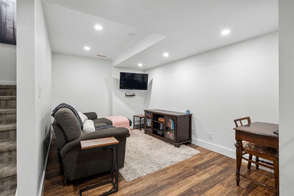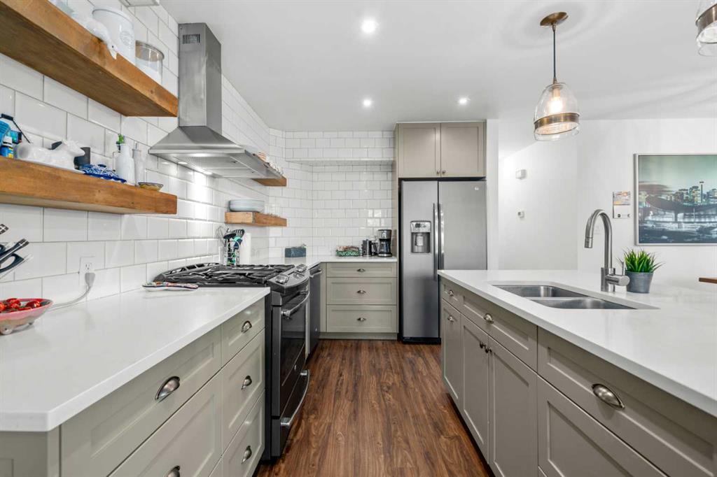 Located in the sought-after inner-city neighborhood of RICHMOND, this well-maintained home offers exceptional value with thoughtful updates, a SOUTH-FACING BACKYARD, and a fully finished basement. Inside, the front living room features a modern PANELLED FEATURE WALL and large windows with PLANTATION SHUTTERS, filling the space with natural light. An ENCLOSED FLEX ROOM houses the LAUNDRY and built-in CABINETRY, ideal as a home office, hobby space, or extra storage. The kitchen is beautifully updated with STAINLESS STEEL APPLIANCES, a GAS STOVE, FLOATING WOOD SHELVES, subway tile backsplash, and a CENTRAL ISLAND overlooking the dining area. A second rear living room at the back of the home features a VAULTED CEILING and a cozy WOOD-BURNING FIREPLACE—perfect for relaxed evenings with a view of the SOUTH BACKYARD. A 2PC POWDER ROOM completes the main level. Upstairs, a SKYLIGHT brightens the hallway leading to two spacious secondary bedrooms and a 4pc main bath. The primary bedroom is a true retreat with room to spare, a WALK-IN CLOSET, and an updated 3PC ENSUITE with a large STAND-UP SHOWER and QUARTZ COUNTERTOP VANITY. Downstairs, the FULLY FINISHED BASEMENT offers flexible living with a LARGE REC ROOM, 4TH BEDROOM with a WALK-IN CLOSET, a 4PC BATH, and plenty of storage. The SOUTH BACKYARD feels like a private escape with MATURE TREES, a COMPOSITE DECK, and PET-FRIENDLY SYNTHETIC GRASS. Additional highlights include CENTRAL AIR CONDITIONING, FLAT PAINTED CEILINGS, an oversized DOUBLE DETACHED GARAGE with GAS HEATER and ATTIC STORAGE, newer HIGH-EFFICIENCY FURNACE, and HOT WATER TANK (2023). Situated on a quiet street with a PAVED BACK LANE and just minutes to Marda Loop, schools, parks, and quick access to downtown, this is inner-city living with room to grow and relax.
