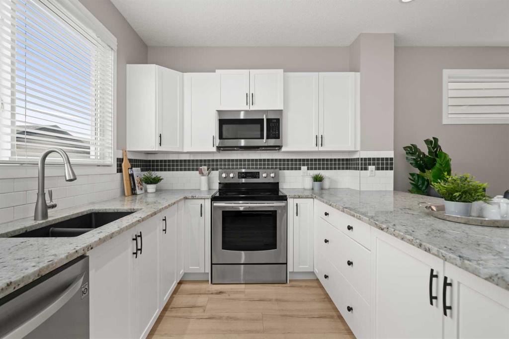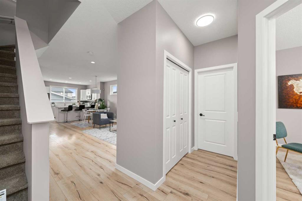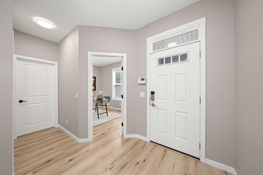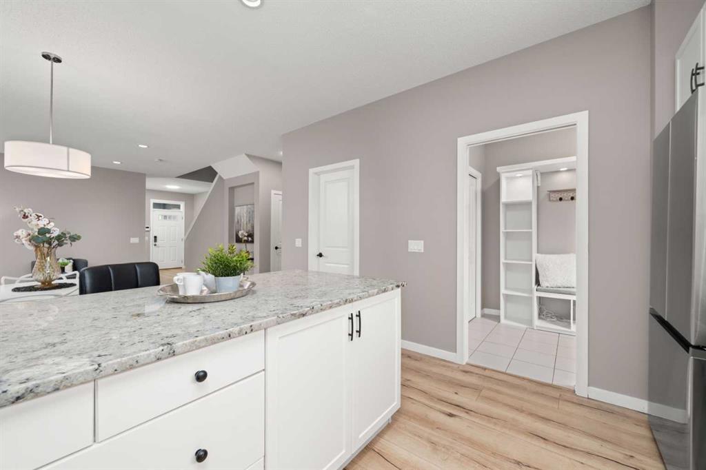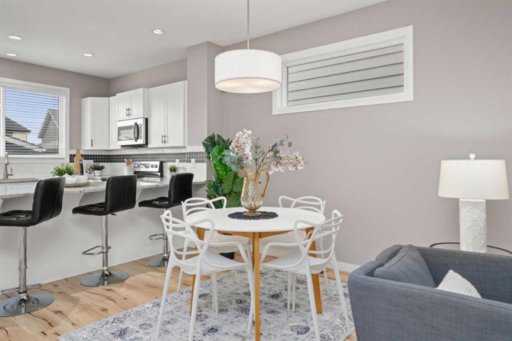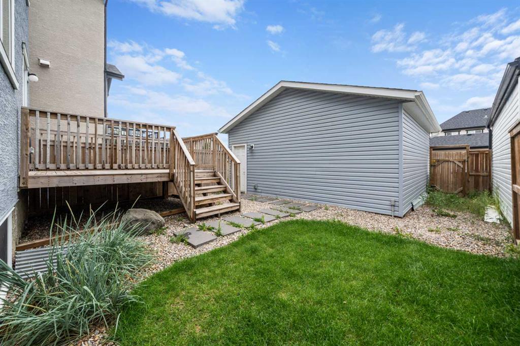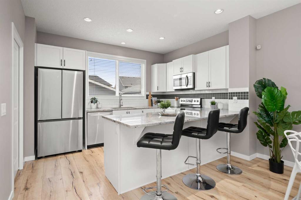 Ideally located just a 15-MINUTE WALK FROM THE MAHOGANY BEACH CLUB, this spacious family home offers an exceptional opportunity to enjoy the lake lifestyle in one of Calgary’s most sought-after communities. With a sunny WEST BACKYARD, an OVERSIZED DOUBLE DETACHED GARAGE, and an impressive layout with 1,800 square feet above grade, this home offers a rare blend of indoor versatility and outdoor comfort—perfect for growing families, remote workers or anyone who values space and functionality. The FRONT OFFICE is smartly enclosed, creating an ideal flex space for working from home, studying, or converting into a quiet fitness room. A TUCKED-AWAY POWDER ROOM adds welcome privacy from the main gathering spaces. Wide-plank floors and soft neutral tones enhance the inviting OPEN FLOORPLAN, anchored by a bright living room. At the heart of the home, a thoughtfully designed kitchen features STAINLESS STEEL APPLIANCES, a GRANITE-TOPPED PENINSULA ISLAND with casual seating, and a LARGE PANTRY to keep everything organized. The kitchen flows seamlessly into a central dining area with space for family meals or entertaining, and is perfectly positioned to overlook the living room so the chef never misses a moment. At the back, a spacious MUDROOM with BUILT-IN BENCH and OPEN STORAGE keeps daily life running smoothly and opens directly onto the LARGE DECK—complete with BBQ GAS LINE and privacy fencing. Whether hosting summer dinners or just soaking in the afternoon sun, this west-facing outdoor space is a natural extension of the home’s main level. Upstairs, a built-in TECH DESK provides a dedicated spot for homework, catching up on emails or creative projects. Two generous secondary bedrooms share a well-appointed 4-piece bathroom, while the PRIVATE PRIMARY SUITE offers a beautifully proportioned retreat with space to add a reading nook, sitting area or yoga mat. A LARGE WALK-IN CLOSET provides excellent storage, while the 4-PIECE ENSUITE includes a full tub/shower combo and vanity with extended counterspace. The full-sized BASEMENT is undeveloped with excellent potential, featuring 3-PIECE BATHROOM ROUGH-IN, an efficient layout for future development, and OVERSIZED WINDOWS for natural light. It’s the perfect blank canvas for an additional bedroom, rec space, or playroom. This home also features FRESH PAINT, SELECT LED LIGHTING UPGRADES, and a well-maintained exterior with a mix of green space and gravel, and a sunny WEST-FACING YARD. The OVERSIZED DETACHED GARAGE includes an OVERSIZED DOOR, offering excellent clearance for trucks and SUVs—rare in lane homes. Located in the award-winning community of MAHOGANY, this address offers more than just a home—it offers a lifestyle. Enjoy privileged lake access, over 20 acres of beachfront, schools, parks, wetlands, scenic pathways, and the vibrant URBAN VILLAGE with shops, restaurants and amenities—all designed for connection, recreation and everyday ease.
