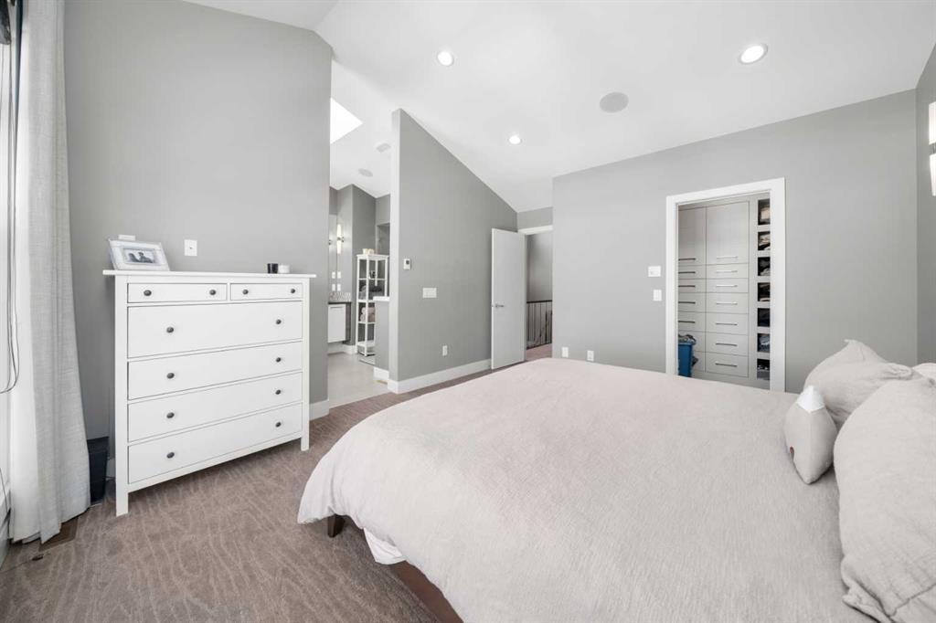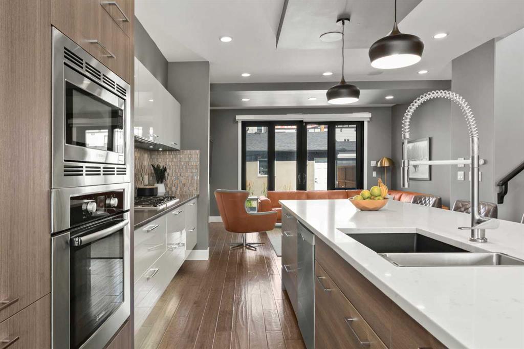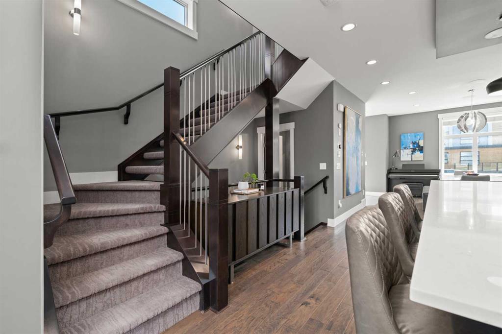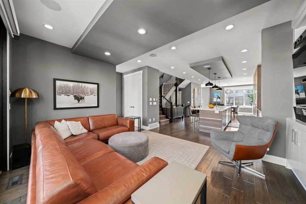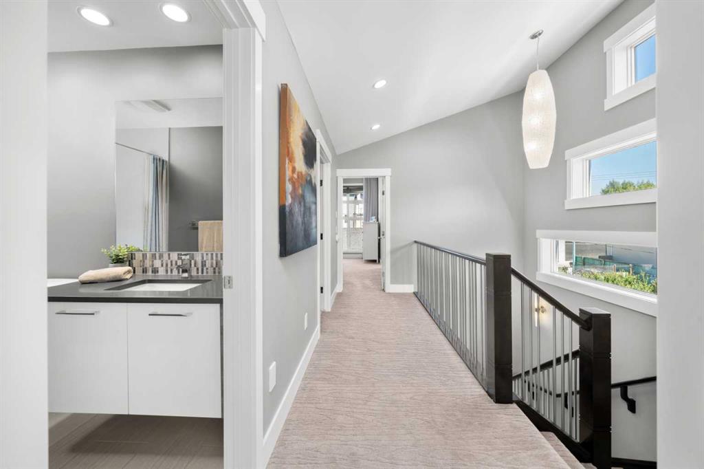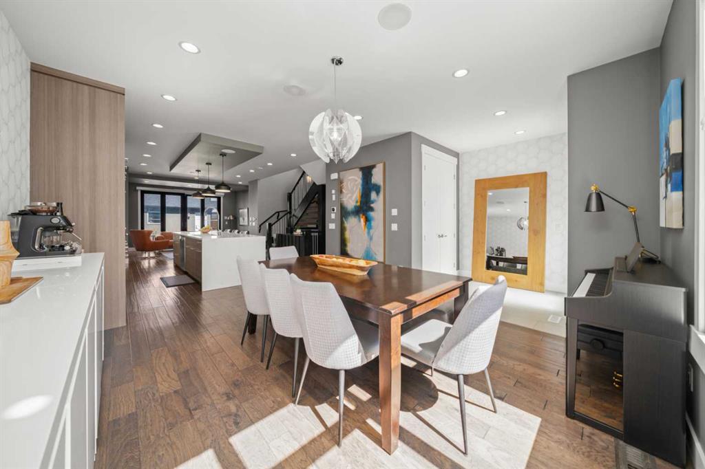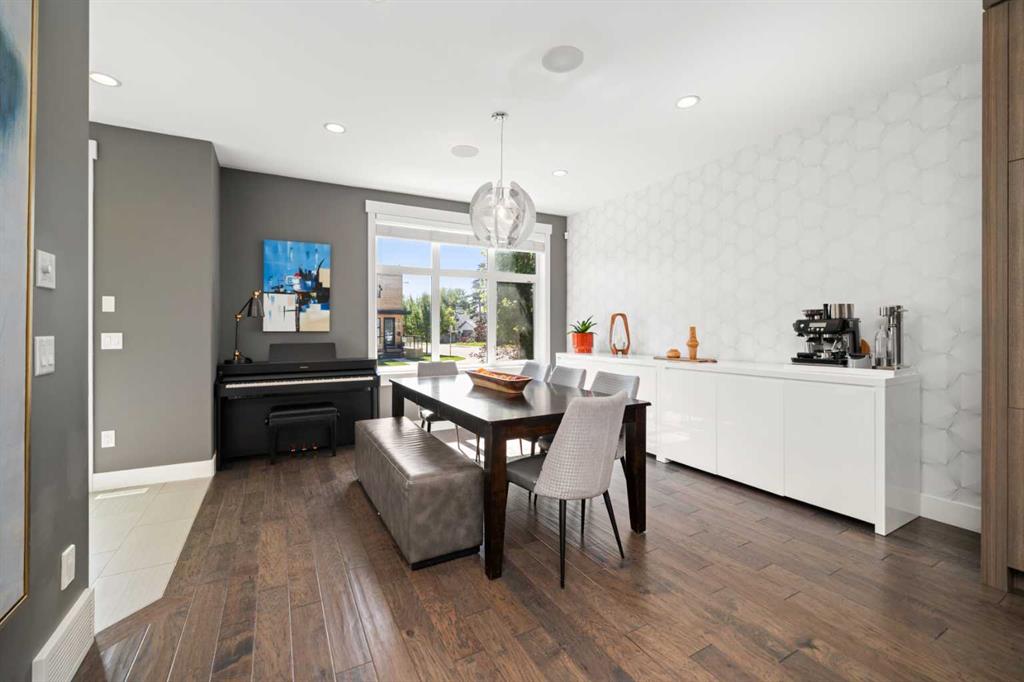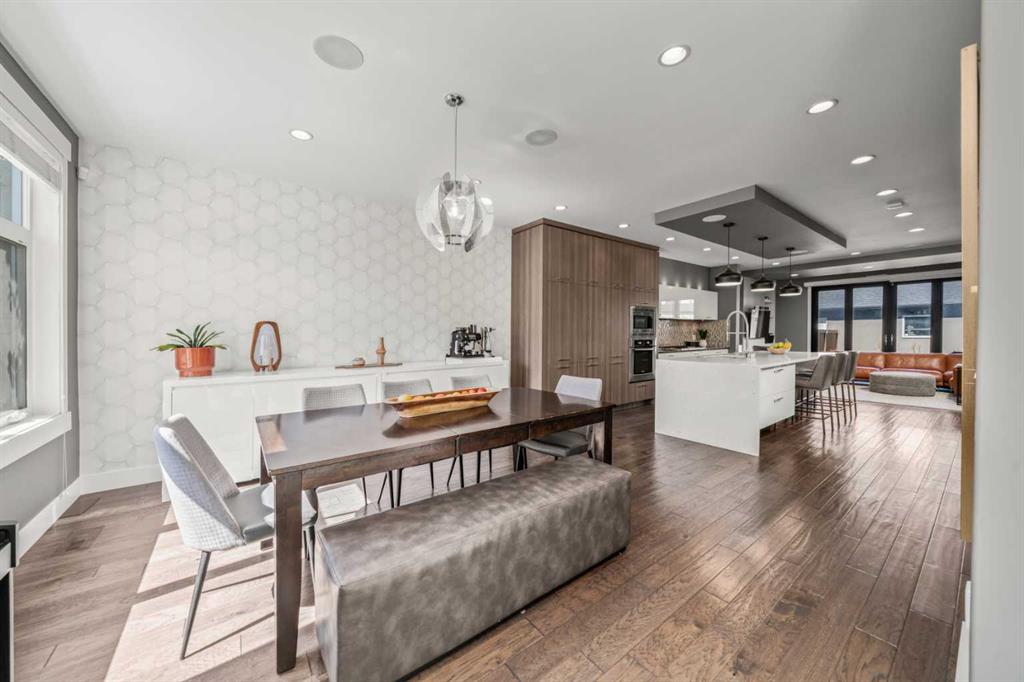 Welcome to CAPITOL HILL, where thoughtful design and timeless upgrades meet a connected inner-city location. This well-maintained home offers almost 2,800 sq.ft of finished living space with QUICK ACCESS TO DOWNTOWN and a short walk to CONFEDERATION PARK, schools, and playgrounds. Step inside to 9’ FLAT CEILINGS, HARDWOOD FLOORS and expansive windows that bring natural light into every corner. The front dining room with feature wallpaper and an included hutch creates a warm, stylish setting for everyday meals or hosting family and friends. The GALLEY KITCHEN is both modern and functional, showcasing BOSCH APPLIANCES, FULL-HEIGHT CABINETRY, a WATERFALL EDGE ISLAND with storage, WALL PANTRY, WALL OVEN and GAS COOKTOP. The spacious LIVING ROOM extends the living space outdoors through sliding doors with MOTORIZED WINDOW COVERINGS, leading to the PATIO and YARD. A GAS FIREPLACE adds warmth, while a MUDROOM and POWDER ROOM enhance everyday convenience. Upstairs, OPEN RISER STAIRS lead to vaulted ceilings and a smart family layout. The primary suite boasts CATHEDRAL CEILINGS, a large WALK-IN CLOSET and a 5-PIECE ENSUITE with DUAL VANITIES, STEAM SHOWER, SOAKER TUB and HEATED FLOORS for spa-like comfort. Two additional bedrooms, a full 4-piece bath and a laundry room with utility sink and cabinetry complete this level. The FINISHED BASEMENT is designed for comfort and connection with HYDRONIC IN-FLOOR HEATING and a spacious rec room complete with custom built-ins and a sleek WET BAR with beverage fridge, perfect for game nights or casual entertaining. A 4-piece bathroom and fourth bedroom add flexibility for guests, teens, or a private home office. The backyard is a private extension of the living space, offering a sun-soaked ground-level PATIO with gas line for effortless BBQs, a flat lawn where kids and pets can play, and direct access to the DOUBLE DETACHED GARAGE. Additional upgrades include CENTRAL A/C, HUNTER DOUGLAS WINDOW COVERINGS, SOLID CORE DOORS and vaulted ceilings for added character. This home offers both lifestyle and convenience, with easy access to downtown, SAIT, the University of Calgary, North Hill Centre, and major roadways, while Confederation Park and local schools are only a short walk away. Whether entertaining, working from home or raising a family, this residence combines modern design, comfort and location in one exceptional package!