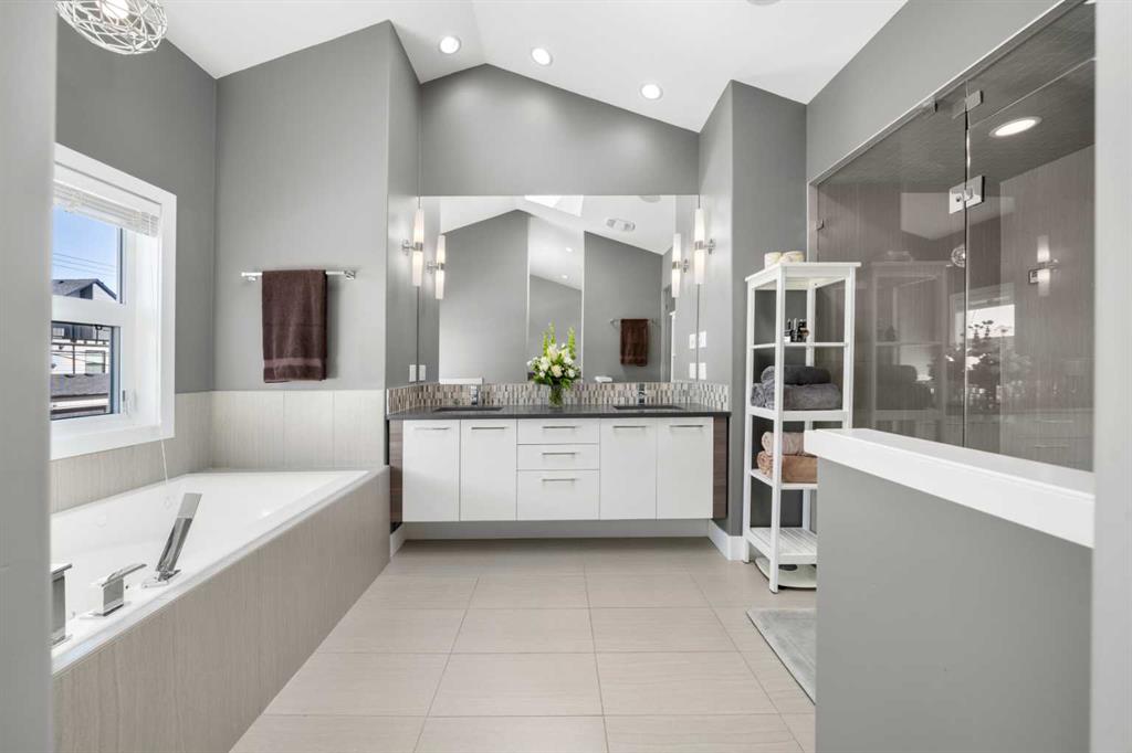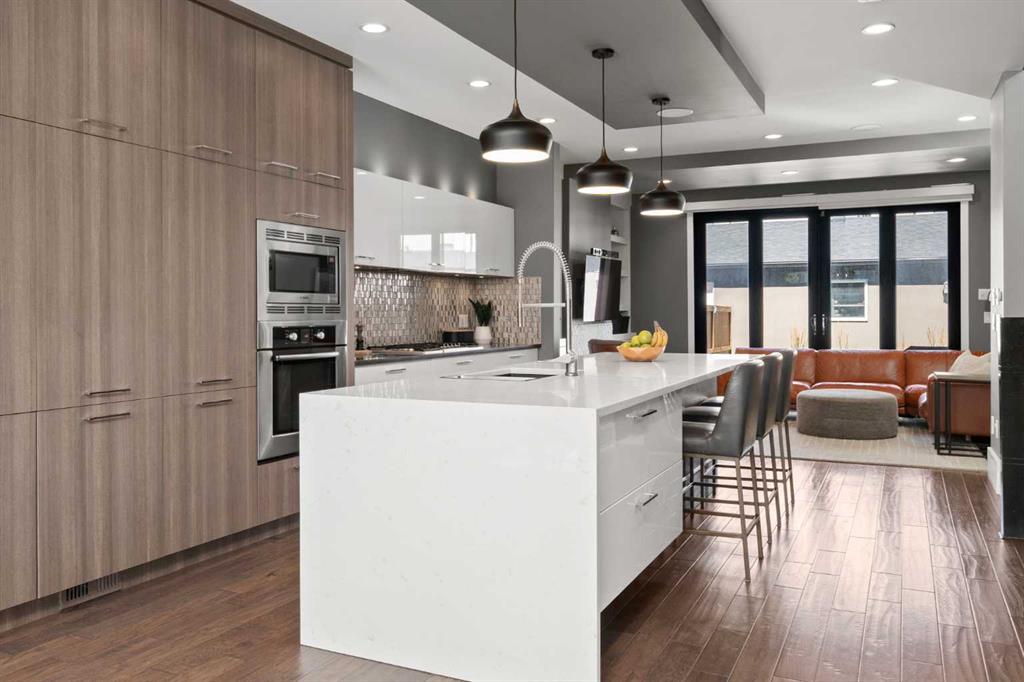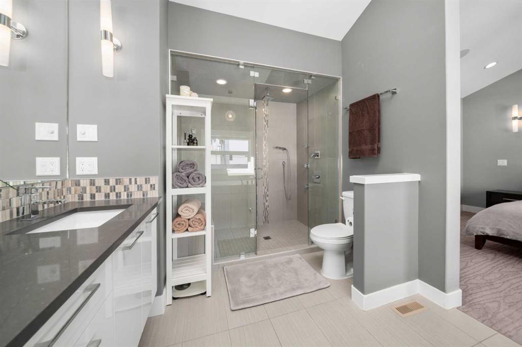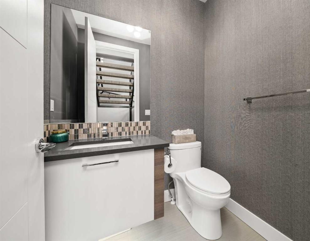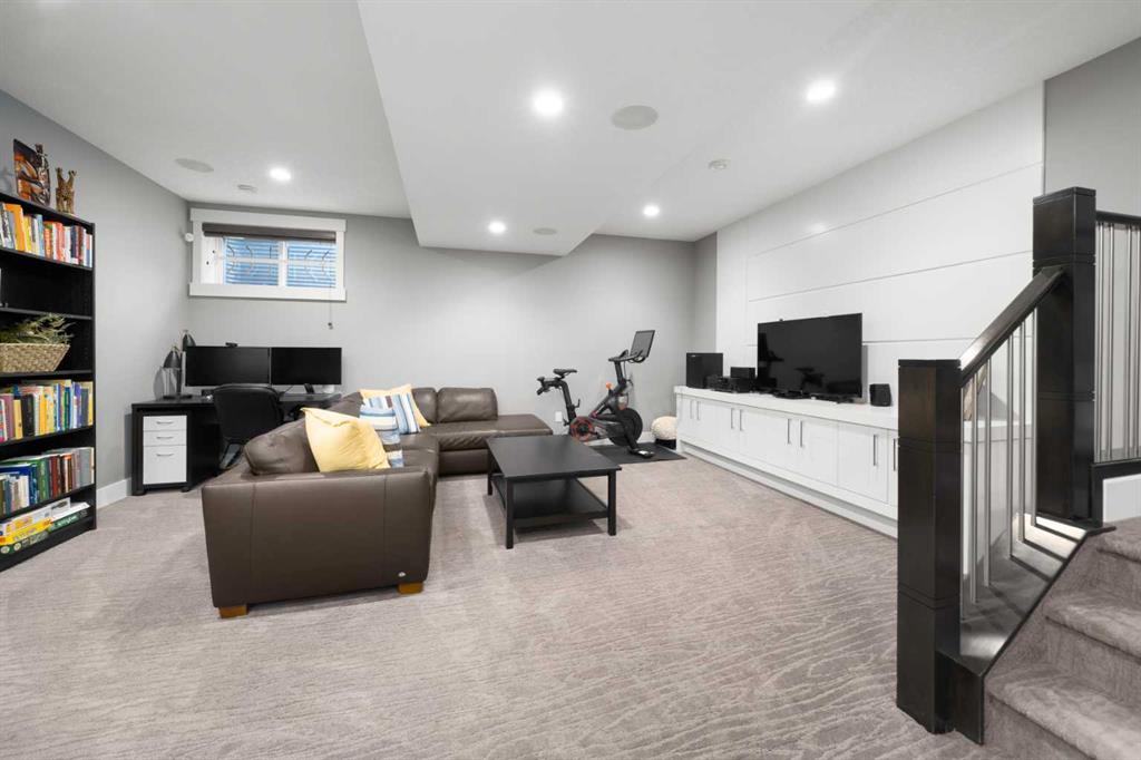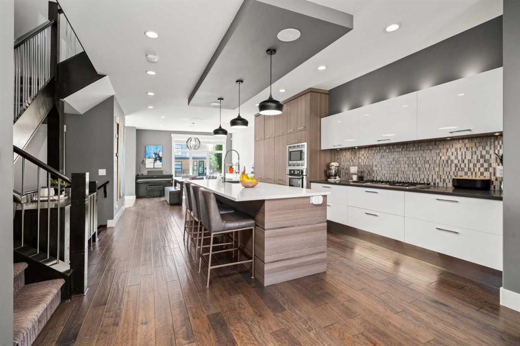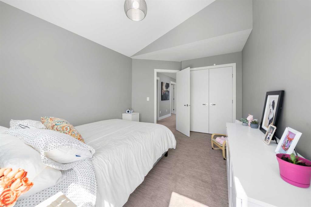 Welcome to CAPITOL HILL, where thoughtful design and timeless upgrades meet a connected inner-city location. This well-maintained home offers almost 2,800 sq.ft of finished living space with QUICK ACCESS TO DOWNTOWN and a short walk to CONFEDERATION PARK, schools, and playgrounds. Step inside to 9’ FLAT CEILINGS, HARDWOOD FLOORS and expansive windows that bring natural light into every corner. The front dining room with feature wallpaper and an included hutch creates a warm, stylish setting for everyday meals or hosting family and friends. The GALLEY KITCHEN is both modern and functional, showcasing BOSCH APPLIANCES, FULL-HEIGHT CABINETRY, a WATERFALL EDGE ISLAND with storage, WALL PANTRY, WALL OVEN and GAS COOKTOP. The spacious LIVING ROOM extends the living space outdoors through sliding doors with MOTORIZED WINDOW COVERINGS, leading to the PATIO and YARD. A GAS FIREPLACE adds warmth, while a MUDROOM and POWDER ROOM enhance everyday convenience. Upstairs, OPEN RISER STAIRS lead to vaulted ceilings and a smart family layout. The primary suite boasts CATHEDRAL CEILINGS, a large WALK-IN CLOSET and a 5-PIECE ENSUITE with DUAL VANITIES, STEAM SHOWER, SOAKER TUB and HEATED FLOORS for spa-like comfort. Two additional bedrooms, a full 4-piece bath and a laundry room with utility sink and cabinetry complete this level. The FINISHED BASEMENT is designed for comfort and connection with HYDRONIC IN-FLOOR HEATING and a spacious rec room complete with custom built-ins and a sleek WET BAR with beverage fridge, perfect for game nights or casual entertaining. A 4-piece bathroom and fourth bedroom add flexibility for guests, teens, or a private home office. The backyard is a private extension of the living space, offering a sun-soaked ground-level PATIO with gas line for effortless BBQs, a flat lawn where kids and pets can play, and direct access to the DOUBLE DETACHED GARAGE. Additional upgrades include CENTRAL A/C, HUNTER DOUGLAS WINDOW COVERINGS, SOLID CORE DOORS and vaulted ceilings for added character. This home offers both lifestyle and convenience, with easy access to downtown, SAIT, the University of Calgary, North Hill Centre, and major roadways, while Confederation Park and local schools are only a short walk away. Whether entertaining, working from home or raising a family, this residence combines modern design, comfort and location in one exceptional package!