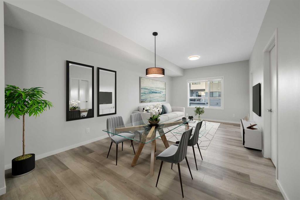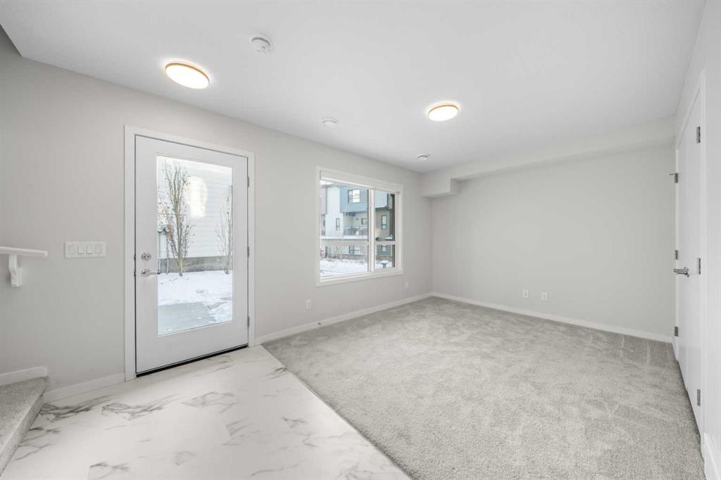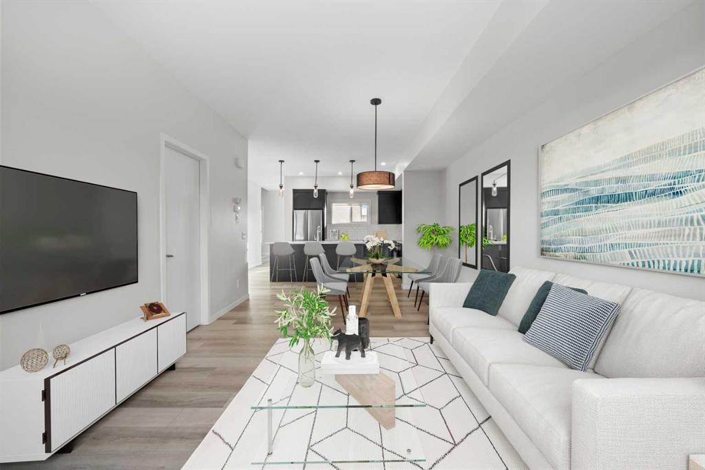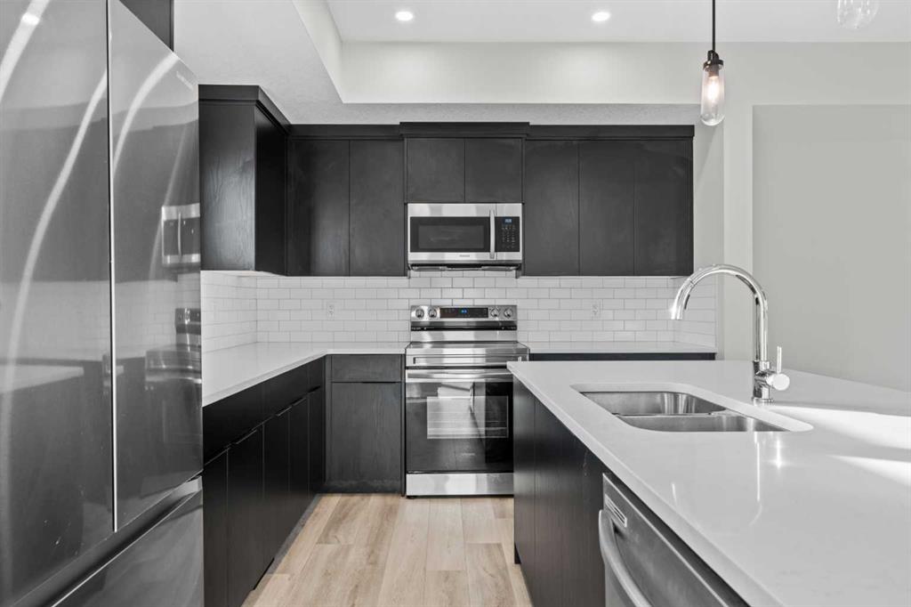 Fronting onto the COURTYARD, this stylish 3-BEDROOM + 2-DEN townhome by award-winning CEDARGLEN LIVING combines modern design with everyday functionality. Nestled beside SCENIC PONDS in a beautifully landscaped, PET-FRIENDLY complex, it offers a connected yet tranquil lifestyle. An INSULATED DOUBLE ATTACHED GARAGE with WATER BIB makes parking and projects easy, while a FLEXIBLE ENTRY-LEVEL SPACE adapts perfectly as a PLAYROOM, REC ROOM, OFFICE, or HOBBY AREA. The bright, OPEN-CONCEPT MAIN FLOOR is filled with NATURAL LIGHT from both NORTH and SOUTH EXPOSURES. A comfortable LIVING ROOM flows seamlessly into the DINING AREA and GOURMET KITCHEN featuring QUARTZ COUNTERTOPS, FULL-HEIGHT CABINETRY, STAINLESS STEEL APPLIANCES, TIMELESS SUBWAY TILE BACKSPLASH, and a LARGE CENTRE ISLAND with extra prep space and seating. Step out to the GLASS-RAILED BALCONY with a GAS LINE for relaxed summer BBQs overlooking the courtyard. A BRIGHT, ENCLOSED DEN on the main level creates the ideal spot for a HOME OFFICE or CREATIVE SPACE, complemented by a convenient POWDER ROOM. Upstairs, THREE SPACIOUS BEDROOMS, a 4-PIECE BATHROOM, and LAUNDRY await. The serene PRIMARY SUITE offers a HUGE WALK-IN CLOSET and a SPA-INSPIRED ENSUITE with DUAL SINKS, QUARTZ COUNTERTOPS, and an OVERSIZED SHOWER. Rough-ins for FUTURE CENTRAL A/C add extra comfort. This vibrant community offers WALKING PATHS, PONDS, and GREEN SPACE, plus access to a PRIVATE CLUBHOUSE with SPORTS COURTS, SPRAY PARK, SKATING RINK, and more. With FISH CREEK PARK’s extensive trails close by, and easy access to RESTAURANTS, SHOPS, and the WORLD’S LARGEST YMCA in SETON, the location is second to none. MOVE-IN READY, this home delivers MODERN FINISHES, SMART DESIGN, and a WELCOMING LIFESTYLE in one of Calgary’s most active communities.