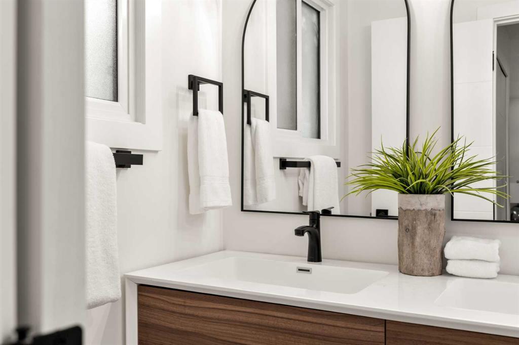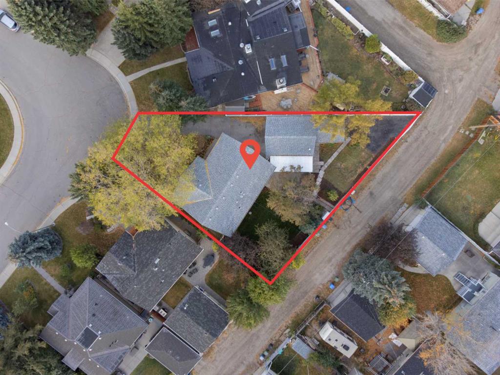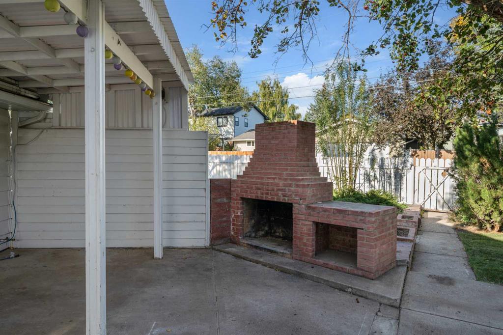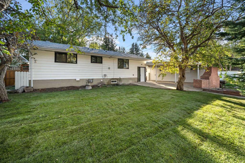 Welcome to BRENTWOOD, one of Calgary’s most beloved family communities, where this PERMITTED RENOVATION transforms a classic bungalow into a modern retreat. Set on a MASSIVE PIE LOT surrounded by mature trees, this residence combines mid-century character with today’s luxury upgrades for a lifestyle that is both stylish and functional. The main floor opens under soaring CATHEDRAL CEILINGS, where a bright front living room looks onto a quiet street through oversized windows. Wide-plank LVP FLOORING runs throughout, enhancing the clean lines of the OPEN CONCEPT LAYOUT. The chef-inspired kitchen is anchored by a large island with flush eating bar, STAINLESS STEEL APPLIANCES with a chimney hood fan, full-height cabinetry, and a BRICK CERAMIC BACKSPLASH. A defined DINING AREA comfortably fits a family table, creating a natural gathering hub for everyday life. The separate sleeping quarters offers three bedrooms, including a spacious PRIMARY SUITE with dual closets and a SPA-LIKE ENSUITE featuring a floating dual vanity and stand-up shower. Two additional bedrooms and a 4pc main bath with soaker tub complete this level, while a handy laundry chute adds convenience for busy families. Downstairs, the FULLY DEVELOPED BASEMENT offers incredible versatility with a large rec room designed for movie nights and games, plus the flexibility to convert part of the space into a 5th bedroom thanks to an existing egress window. this level also includes a 4th bedroom with walk-in closet, a modern 3pc bath with stand-up shower, dedicated laundry room, and abundant storage. Outdoors, the landscaped yard is a true retreat. An EXTERIOR BRICK FIREPLACE adds timeless charm for evenings under the trees, while a COVERED PATIO offers space to barbeque and unwind in every season. With room for a vegetable garden, a shed for storage, and plenty of green space for kids to play, this lot is both beautiful and functional. The DOUBLE DETACHED GARAGE IS INSULATED, HEATED, and features a new door and opener, offering winter comfort and year-round utility. Families will love the walkable proximity to MULTIPLE LEVELS OF SCHOOLING, the UNIVERSITY OF CALGARY, BRENTWOOD LRT STATION, the public library, shopping centres, and community recreation. Nature enthusiasts will appreciate being just minutes from NOSE HILL PARK, one of Calgary’s largest green spaces. This renovated bungalow delivers the design quality of a modern luxury home while preserving the warmth of a family-friendly Brentwood location!