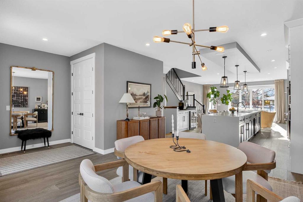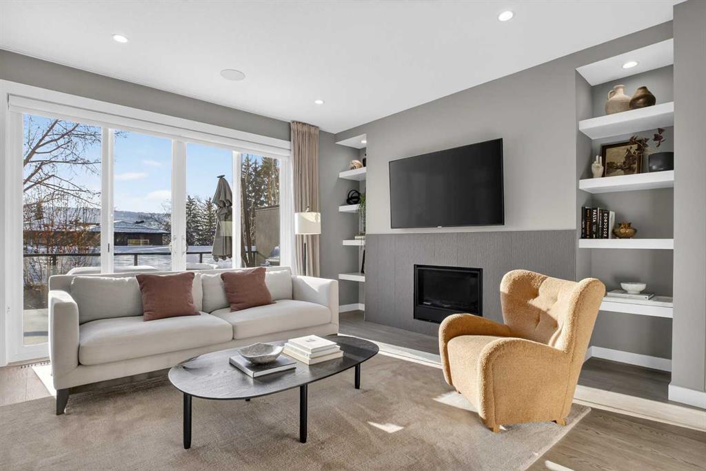 Exceptionally maintained and thoughtfully upgraded, this refined residence in Montgomery captures beautiful VALLEY VIEWS from both the living room and primary bedroom. A bright OPEN-CONCEPT MAIN FLOOR creates seamless flow for everyday living and entertaining, enhanced by HARDWOOD FLOORING, DESIGNER LIGHTING, and carefully selected finishes throughout. The kitchen anchors the space with an oversized WATERFALL QUARTZ ISLAND offering generous seating, FLOOR-TO-CEILING CABINETRY for exceptional storage, and a KITCHENAID STAINLESS STEEL APPLIANCE PACKAGE including a GAS COOKTOP, BUILT-IN WALL OVEN, and microwave. A full-height wall pantry with pullout drawers keeps everything organized, while a dedicated BEVERAGE STATION with WINE FRIDGE makes hosting effortless. The living room spans the full width of the home and invites connection, featuring a GAS FIREPLACE flanked by RECESSED SHELVING and patio sliders that open to a FULL-WIDTH BALCONY, extending your living space outdoors and maximizing the SW EXPOSURE. A tucked-away powder room completes the level. Upstairs, a soaring CATHEDRAL CEILING enhances the hallway’s sense of space, while a functional laundry room with cabinetry, utility sink, and NEW WASHER AND DRYER streamlines daily routines. Two spacious secondary bedrooms feature OVERSIZED WINDOWS for abundant natural light and flexible layouts, complemented by a 4pc main bath. The primary bedroom offers a calming retreat with a COFFERED CEILING, WALK-IN CLOSET with custom MILLWORK SHELVING AND DRAWERS, and a spa-inspired 5PC ENSUITE with OVERSIZED SHOWER and HEATED FLOORING for everyday comfort. The WALKOUT BASEMENT connects indoor and outdoor living and is designed for entertaining, complete with a rec room featuring BUILT-IN ENTERTAINMENT CABINETRY and a WET BAR with BEVERAGE CENTRE for easy refreshment access. A 4pc bath and fourth bedroom with included Ikea wardrobe add versatility for guests or home office needs. Outdoors, LOW-MAINTENANCE LANDSCAPING creates privacy without the upkeep of a traditional lawn, highlighted by DECORATIVE GRAVEL, RAISED GARDEN BEDS, a central PATIO framed by CONCRETE PAVERS, and a COVERED PATIO off the walkout level for sheltered relaxation. Additional UPGRADES include BUILT-IN SPEAKERS, AIR CONDITIONING, FLOOR-TO-CEILING WINDOW DRAPES, and BLACKOUT WINDOW COVERINGS in bedrooms. Parking is provided by a DOUBLE DETACHED GARAGE that is INSULATED, DRYWALLED, and EV CHARGER READY, accessed via a PAVED BACK LANE. Walking distance to BOW RIVER PATHWAYS and SHOULDICE PARK, this location also offers quick access to MARKET MALL, the UNIVERSITY OF CALGARY, FOOTHILLS MEDICAL CENTRE, ALBERTA CHILDREN’S HOSPITAL, and DOWNTOWN, delivering an exceptional balance of lifestyle and convenience.