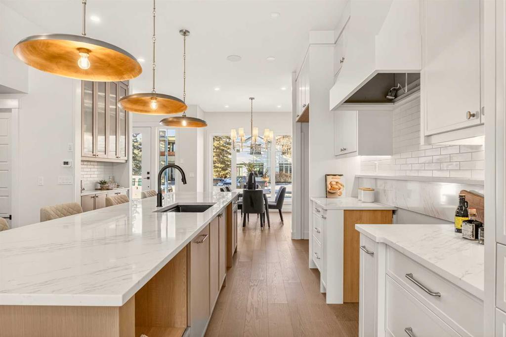 ***OPEN HOUSE: Saturday, Feb 28th 3:00 - 5:00 PM*** Experience refined inner-city living in WEST HILLHURST with this newly built 3-storey semi-detached infill offering over 3,500 sqft of professionally developed space. Positioned in a quiet cul-de-sac with a sunny south-facing backyard, this home delivers privacy, natural light, and thoughtful design across all 4 levels. A spacious dining area welcomes gatherings of any size, seamlessly connecting to a chef-inspired kitchen anchored by a large island designed for everyday living and entertaining. FULL HEIGHT CABINETRY maximizes storage while a dedicated wall pantry keeps essentials organized and out of sight. HIGH-END APPLIANCES including a gas stove support precision cooking, and carefully curated finishes elevate both style and function. A warm living area centers around a GAS FIREPLACE FRAMED BY BUILT-IN SHELVING and cabinetry, creating a natural focal point for relaxing evenings. Patio sliders extend living outdoors to the fully fenced SOUTH BACKYARD and ground-level patio, offering effortless indoor-outdoor flow. An enclosed mudroom provides practical storage for busy households, while a tucked-away powder room adds convenience without interrupting the main living space. Upper levels are designed for flexibility and comfort, featuring 4 bedrooms above grade including 2 primary retreats. A secondary primary suite on the 2nd level showcases wall paneling detail, a large walk-in closet, and a 5pc ensuite with in-floor heating and a dual vanity for everyday ease. Top-floor living is dedicated to a PRIVATE PRIMARY SANCTUARY complete with sitting area, dry bar for morning coffee or evening wind-down, balcony access, expansive walk-in closet, and a luxurious 5pc ensuite with dual vanity, freestanding tub, and glass shower. Access to an additional balcony enhances connection to the outdoors and captures elevated views. A FULLY DEVELOPED BASEMENT adds valuable living space with a large recreation room, wet bar for entertaining, 5th bedroom, 4pc bath, and generous storage options. UPGRADES include ROUGH-INS FOR AC, HYDRONIC IN-FLOOR HEATING in the basement, AND STEAM SHOWER, ALONG WITH CEILING SPEAKERS AND A DUAL-ZONE FURNACE system that separates the basement and main floor from the 2nd and 3rd levels for tailored comfort and efficiency. DOUBLE DETACHED GARAGE provides secure parking and additional storage flexibility. Located steps from the Bow River pathway system, parks, and playgrounds, and minutes to Kensington’s shops and dining, this address also offers quick access to downtown, Foothills Medical Centre, Alberta Children’s Hospital, and top-rated area schools including Queen Elizabeth School and Hillhurst School. Thoughtful layout, elevated design, and premium UPGRADES come together in one of Calgary’s most desirable neighborhoods.