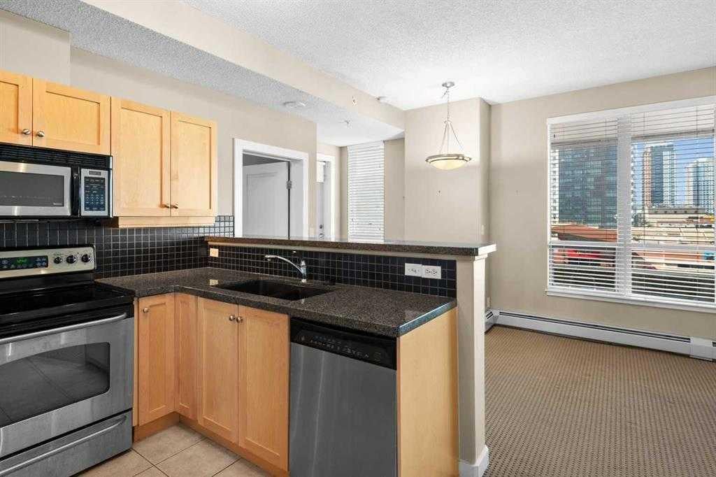 Urban convenience and everyday comfort come together in this well-designed condo located in the HEART OF THE BELTLINE, just steps from shopping, dining, transit and endless amenities. A private entryway introduces a welcoming first impression while adding separation from the main living space. Thoughtful layout reveals an oversized 1 bedroom plus flex room configuration that adapts easily to both daily routines and work-from-home needs. Natural light pours through large WEST-FACING WINDOWS, filling the open-concept main area with warmth throughout the day. GRANITE COUNTERTOPS, STAINLESS STEEL APPLIANCES and expansive prep surfaces define the kitchen, where a peninsula island with raised eat-up bar invites casual meals and easy connection. Effortless transition leads into the living and dining areas, making gatherings feel comfortable and unforced. A well-positioned FLEX SPACE functions seamlessly as a home office, reading area or added storage depending on your lifestyle. Direct access from the bedroom into the 4-piece bath through a cheater ensuite layout enhances both privacy and convenience. IN-SUITE LAUNDRY remains neatly tucked away, keeping day-to-day organization simple and out of sight. Outdoor time feels elevated on the west-facing balcony complete with a GAS BBQ LINE, creating the perfect place to unwind while taking in CITY VIEWS and evening sun. TITLED UNDERGROUND PARKING ensures secure, year-round convenience. Residents enjoy access to a RENOVATED GYM AND 24/7 CONCIERGE service, contributing to a low-maintenance lifestyle with added peace of mind. Immediate proximity to the LRT simplifies commuting, while nearby shops, restaurants and services place everything within easy reach. This is a truly outstanding opportunity to invest in a well-located home that balances function, comfort and connected inner-city living.